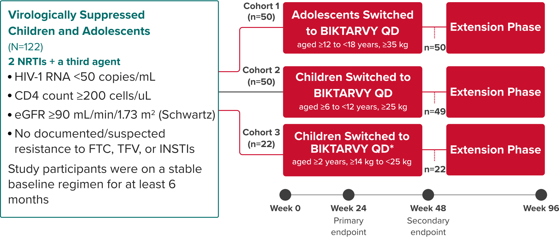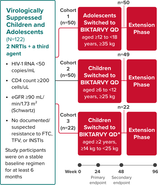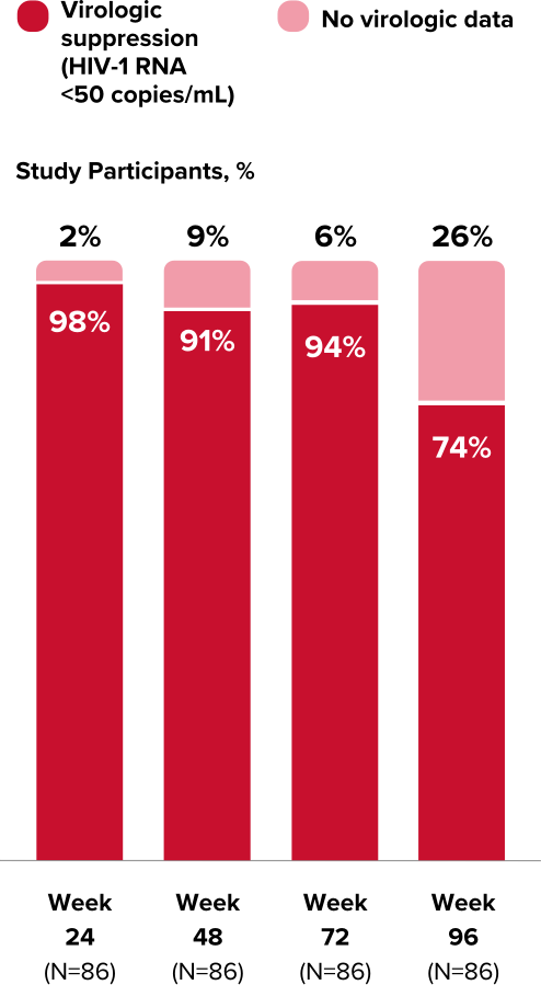 The objective of the extension phase from Week 48 through Week 96 was to evaluate the efficacy and safety of BIKTARVY after additional exposure8