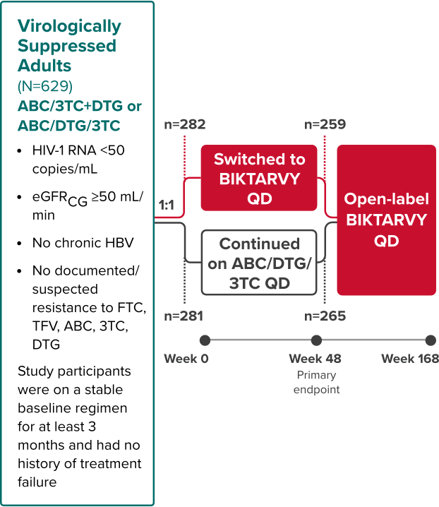 The objective of the OLE from Week 48 through Week 168 was to evaluate the efficacy and safety of BIKTARVY after additional exposure5