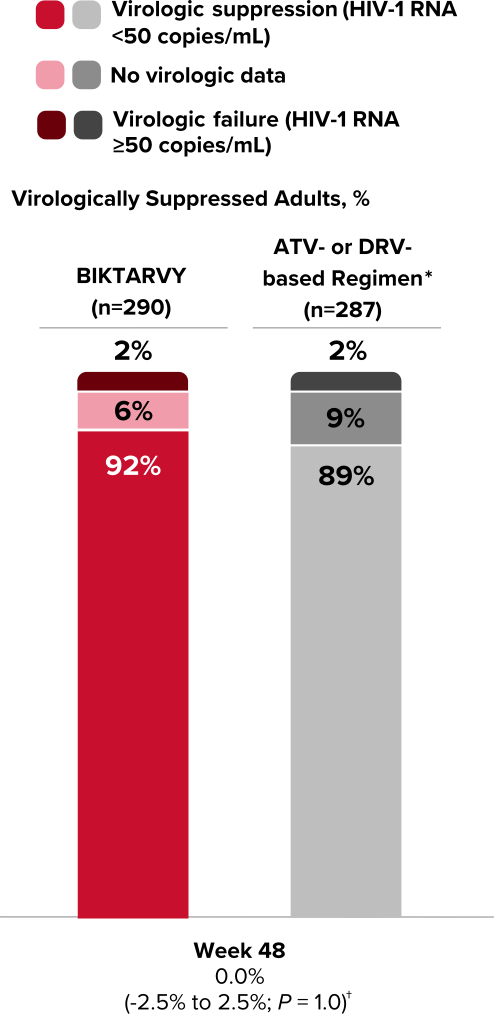 BIKTARVY vs ATV- or DRV-based regimen in virologically suppressed adults1,7,8