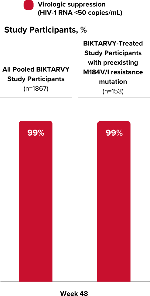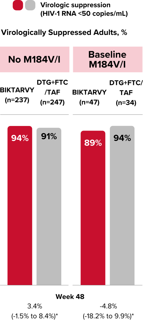 *Based on study participants with available baseline PR/RT genotype who switched to BIKTARVY at baseline or after 24 or 48 weeks (n=182/1825).